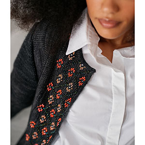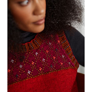 Jeanette Sloan BEM is a leading UK knitwear designer. She teaches both online and in person, and her writing has appeared in knitting publications including Vogue Knitting and Laine Magazine, where she has a regular column. Jeanette is also the founder of BIPOC in Fiber, a resource showcasing BIPOC fibre artists.