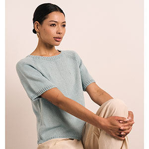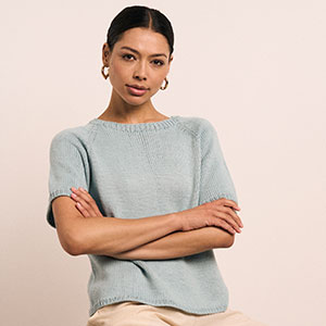 The Else sweater is a minimalist design that celebrates simplicity. This short-sleeved knit features a smooth stocking stitch finish with a subtle raglan sleeve, offering a modern silhouette and effortless style. Knitted in MODE Cotton DK, Else is ideal for warm weather layering or as a stand-alone piece, making it a versatile addition to any wardrobe.