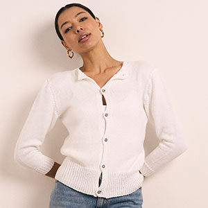 Pedrine is a timeless and versatile button-up cardigan designed for effortless layering and year-round wear. Crafted in MODE Cotton DK and a smooth stocking stitch, it offers a clean and minimalist look with a tailored fit that flatters the figure. The cardigan features a round neckline, full-length sleeves, and a ribbed hem and cuffs for added texture and structure. The metal buttons down the front add a touch of understated elegance, making it easy to style for both casual and elegant outfits.
