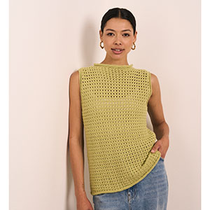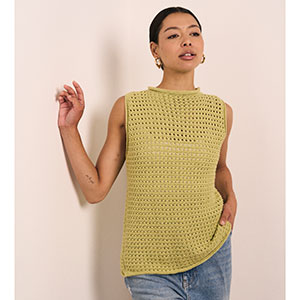 The Wilhelmine sleeveless top is a fresh and modern design, featuring an airy openwork pattern that adds both texture and breathability. Knitted in MODE Cotton DK, this lightweight piece is perfect for warmer days, offering comfort with a clean, defined silhouette.